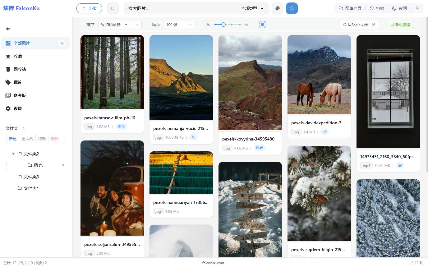 A: 它是 Eagle 的最佳伴侣。我们在收集素材、打标签时依然推荐使用 Eagle 的原生客户端(体验最好)。但当你需要跨设备查看、iPad绘画参考、团队分享时,FalconKu 是不可或缺的补充神器。